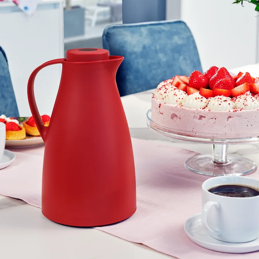 Voor wie op warme dagen wil genieten van een koude drank of een warme drank bij lage temperaturen, is de Harmonic thermoskan met een inhoud van 1 l in donkerrood van Leifheit de juiste keuze. De kan biedt optimale isolatie en houdt dranken tot 24 uur warm en 36 uur koud. Binnenin zit een dubbelwandige glazen binnenfles. Dankzij het klassieke ontwerp past het model perfect in elk huishouden. Voor het gemakkelijk inschenken van koffie, thee en andere dranken heeft de koffiepot een gebogen schenktuit. De schroefdop is lekvrij en 100 procent lekvrij. De vacuümkan is uiteraard BPA-vrij en kan dus zonder aarzeling worden gebruikt. De Harmonic 1 l thermosfles in donkerrood heeft een ergonomisch handvat en is daardoor zeer gemakkelijk te hanteren. Bovendien vergemakkelijkt dit handvat het inschenken van dranken. De moderne sluiting is zeer gebruiksvriendelijk. De hoogte van de drukknop geeft aan of de thermosfles open of gesloten is.- Kan met dubbelwandige glazen binnenfles houdt dranken 24 uur warm en 36 uur koud