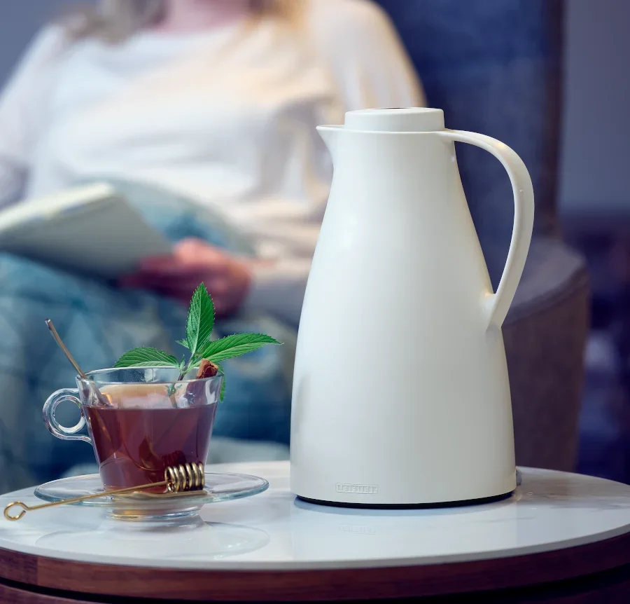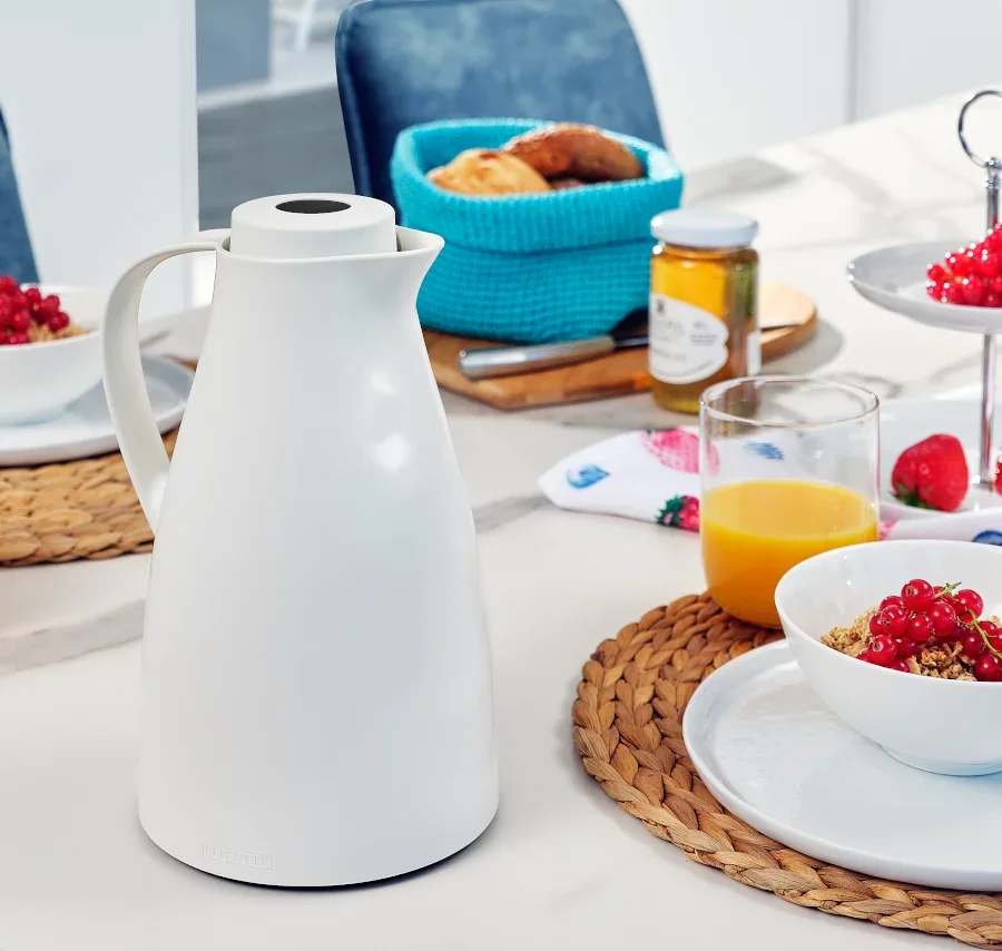 Voor wie dranken tot 24 uur warm en 36 uur koud wil houden, is de isoleerkan Harmonic met een inhoud van 1 l in wit van Leifheit de juiste keuze omdat hij een optimale isolatie levert. De kan beschikt daarvoor over een dubbelwandige glazen binnenfles. Met het klassieke design past het model perfect in elk huishouden. Om koffie, thee en dergelijke zonder knoeien in te schenken, heeft de koffiekan een gewelfde tuit. Hierdoor wordt hinderlijk nadruppelen voorkomen. De schroefdop is lekvrij en 100 procent dicht. Uiteraard is de isoleerkan BPA-vrij en kan daarom zonder zorgen worden gebruikt. Omdat de isoleerkan Harmonic 1 l in wit is uitgerust met een ergonomisch handvat, is hij heel goed hanteerbaar. Bovendien vergemakkelijkt dit het inschenken. De moderne dop is eenvoudig te bedienen. Aan de hoogte van de drukknop is te zien of de isoleerkan open of dicht is.- Kan met dubbelwandige glazen binnenfles houdt dranken 24 uur warm en 36 uur koud