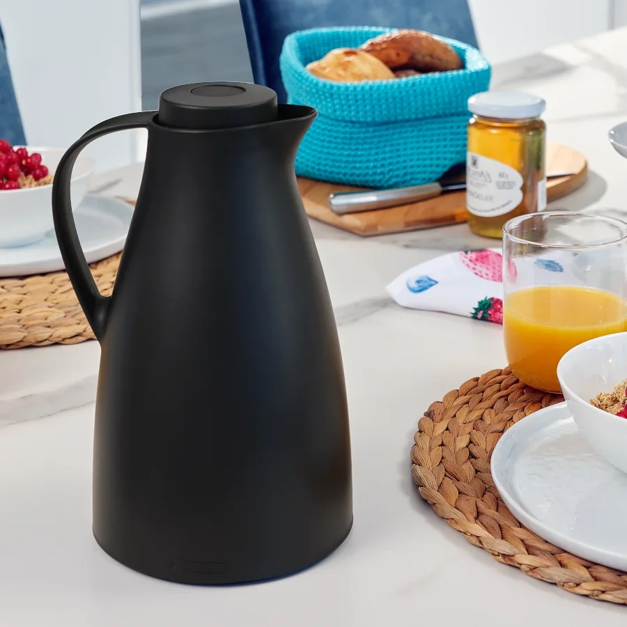 Houdt drankjes tot 24 uur warm en 36 uur koud? Geen probleem: als u de Harmonic 1 liter inhoudskan in zwart van Leifheit koopt, profiteert u van een optimale isolatie. De dubbelwandige glazen binnenfles zorgt ervoor dat. Omdat het model een klassiek ontwerp heeft, past het perfect in elk huishouden. Om gemakkelijk koffie, thee en dergelijke uit te schenken heeft de koffiepot een gebogen schenktuit. Dit voorkomt vervelend gedruppel. De schroefdop is lekvrij en 100 procent lekvrij. De vacuümkan is uiteraard BPA-vrij en kan dus zonder aarzeling worden gebruikt. Dankzij het ergonomische handvat is de Harmonic 1 l vacuümkan in zwart zeer gemakkelijk te hanteren en vergemakkelijkt hij het uitschenken. De moderne sluiting is gemakkelijk te gebruiken. De hoogte van de drukknop geeft aan of de vacuümkan open of gesloten is.- Kan met dubbelwandige glazen binnenfles houdt dranken 24 uur warm en 36 uur koud