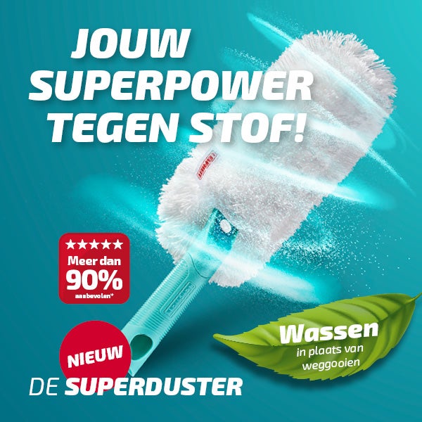 De SUPERDUSTER is een plumeau die tegen een wasbeurt kan. Je kunt jouw superheld tot wel 50 keer in de wasmachine wassen en daarna is hij meteen weer klaar voor zijn volgende avontuur in jouw huishouden. Dat vinden wij echt super, want zo voorkom je onnodig afval en lever je een bijdrage aan het milieu. En dat is nog niet alles. Doordat je de SUPERDUSTER eenvoudig kunt wassen en hergebruiken, bespaar je niet alleen onnodig afval maar ook geld. Super zuinig.